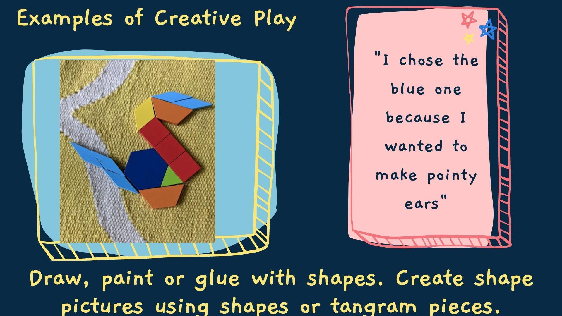 - Draw, paint or glue with shapes. Create shape pictures using shapes or tangram pieces. (See First Class activity plan on Shape).