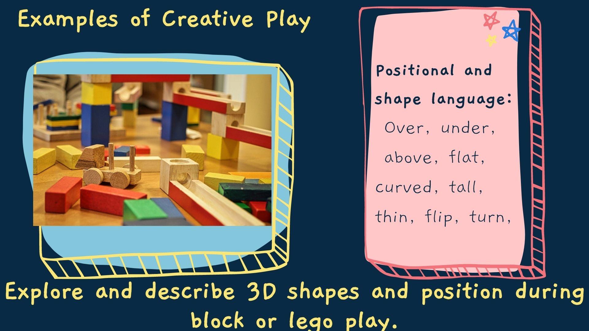 - Explore and describe 3D shapes and position during block play.