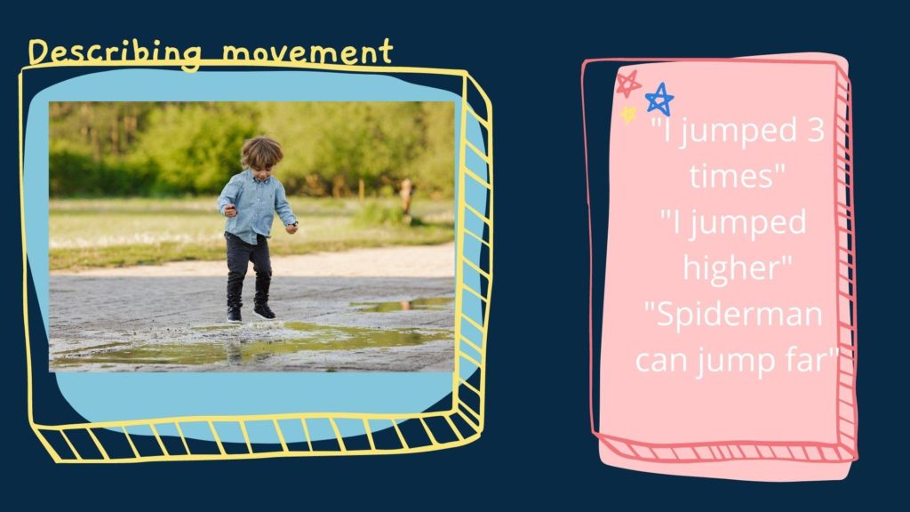 - Children’s movements and positions, indoors and outdoors, can be described in spatial terms.