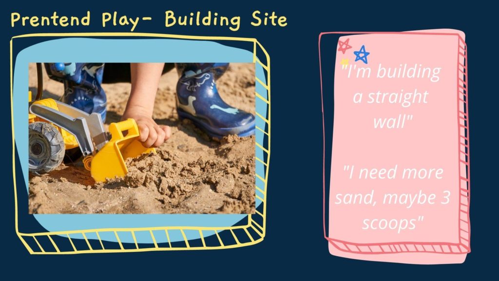 - Exploring the concept of length while measuring in the building site (e.g. using vocabulary of long/short, longer/shorter than, imaginative play using measuring tape).