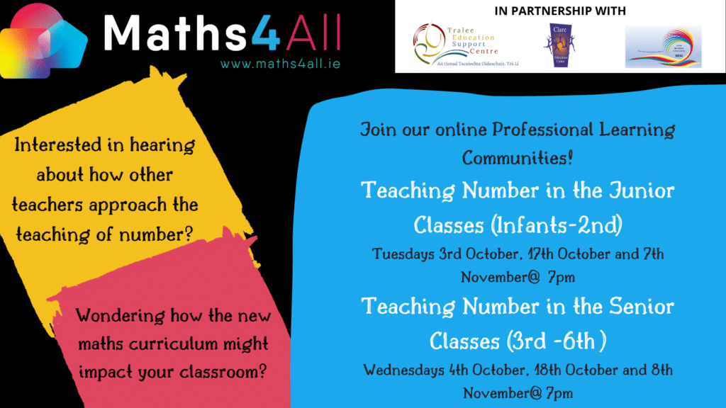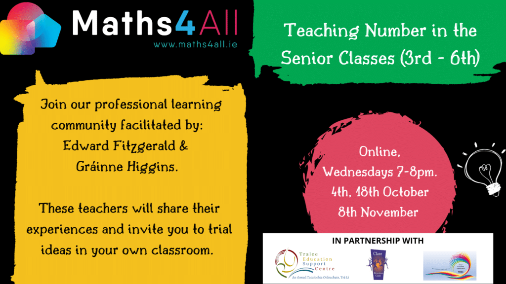 The teachers presenting these series of workshops have been working together to explore the teaching of number in the context of the new curriculum. Across these three online meetings, they will share their experiences and will encourage teachers to try out ideas in their own classrooms and discuss their successes and challenges in follow-up meetings.